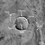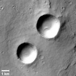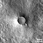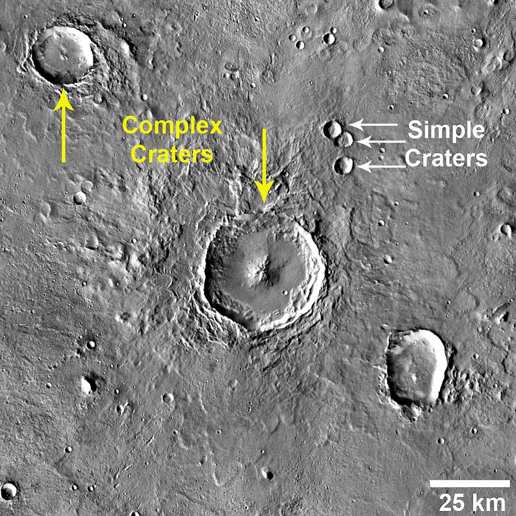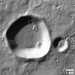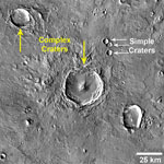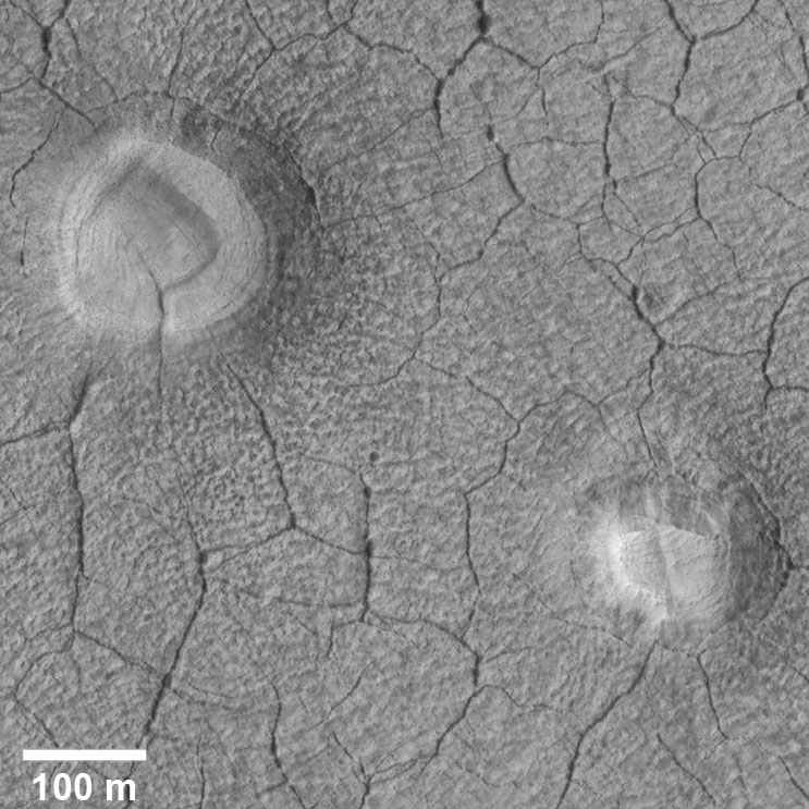 Daytime infrared view of large (right, Mojave Crater) and small (left) complex impact craters