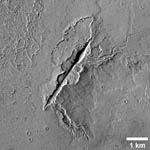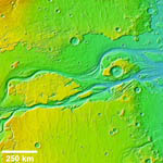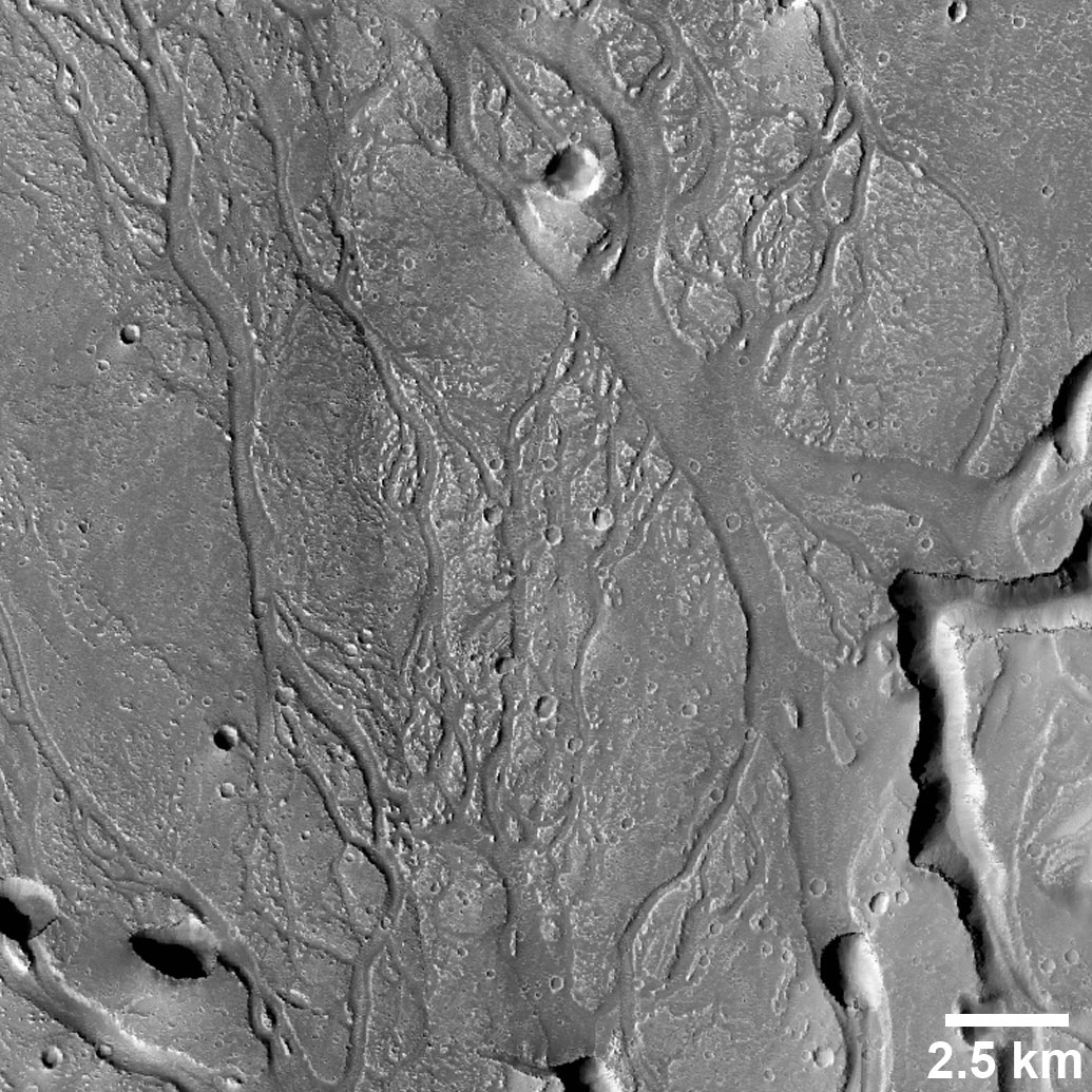 Hebrus Valles, a set of channels on Mars, viewed in daytime IR