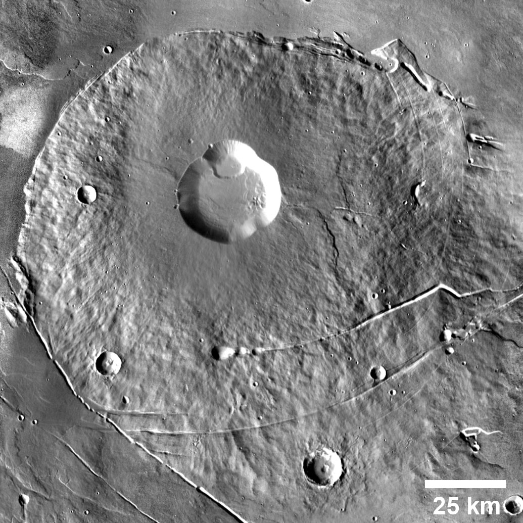 Olympus Mons, the largest volcano in the solar system, in daytime infrared