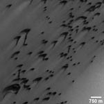 Dark barchan sand dunes on a crater floor in Arabia Terra